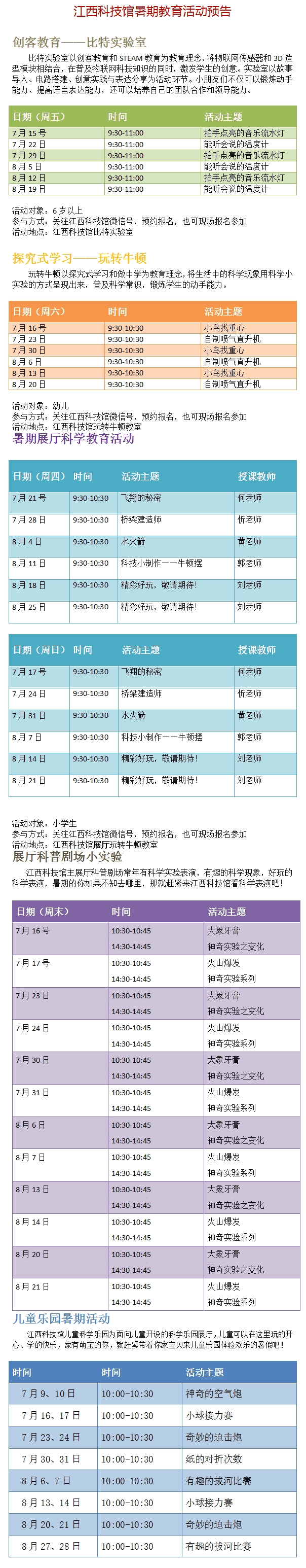 2016年暑期科学教育活动预告