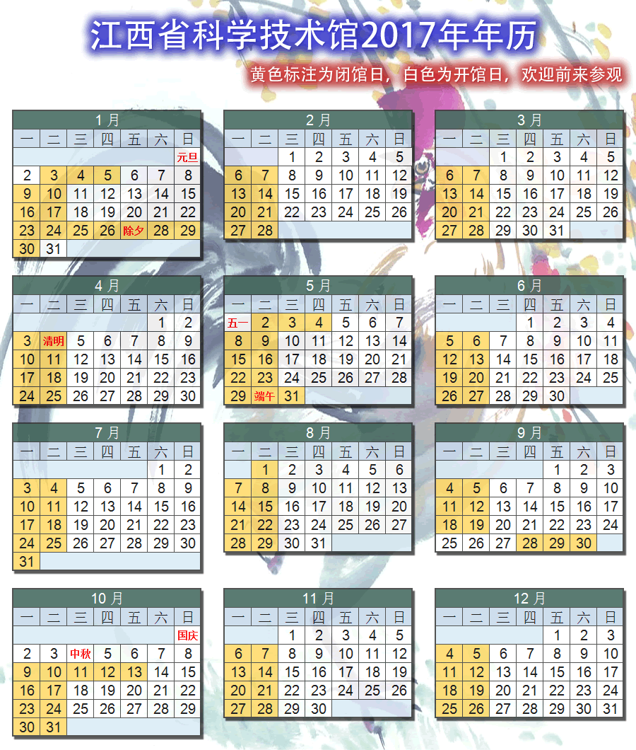 2017年开馆日历