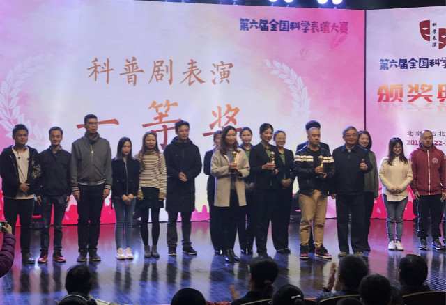 10月25日在北京由中国青少年科技辅导员协会、中国科普作家协会和新华网共同主办的第六届全国科学表演大赛颁奖典礼上,我馆创作表演的科普剧《迷悟》、科学秀《魔法泡泡秀》从20余省、区、市的46只代表队94部作品中杀出重围,分别获得第六届全国科学表演大赛成人组科普剧表演一等奖、科学秀表演二等奖的好成绩!同时我馆科技辅导员、科普剧《迷悟》中爷爷的扮演者:袁星宇,从全场上千名演员中脱颖而出,获得了第六届全国科学表演大赛科学演绎达人奖,本奖项全场只有十位表演者获得。