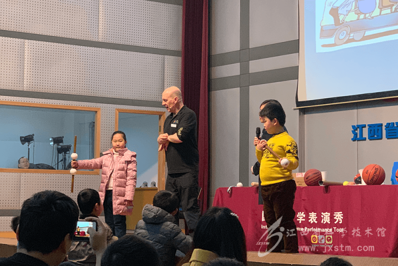 表演中,大卫的道具都是取自我们身边的普通材料,小道具大道理,让孩子们恍然大悟、豁然开朗,回到家也能够就地取材,活学活用。活动现场的每个观众和大卫一起互动,一起探索,一起思考,一起发现。语言不是障碍,在大卫的带领下,充分利用肢体语言,把科学秀了出来。