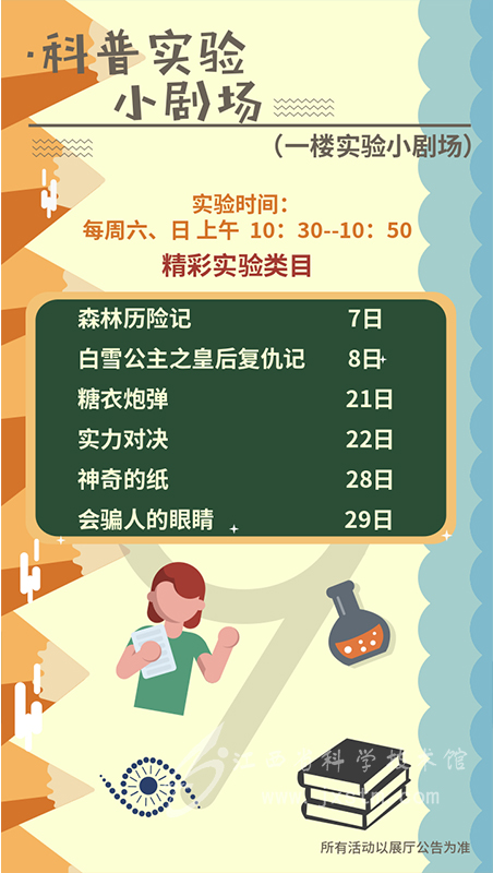 | 科普实验小剧场 | 每周六、日,上午 |