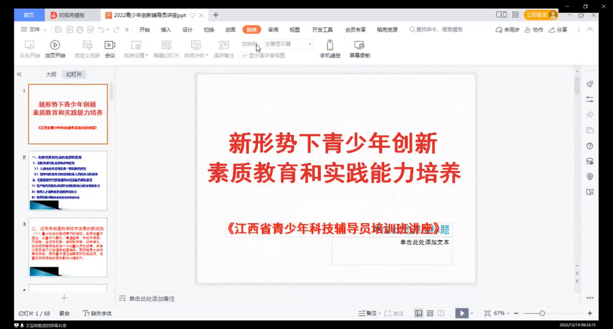 我馆动态 发布时间:2023/1/3 17:08:32 访问量:12月19-21日,2022年江西省青少年科技竞赛暨科学教育活动骨干辅导员培训班在线上举行。来自全省各设区市的227名基层科技教师、科技辅导员参加了本次培训班。