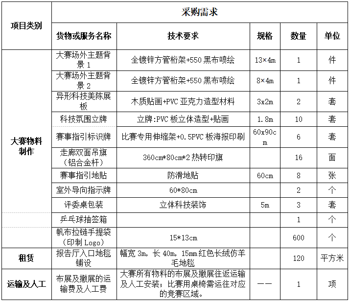 最新公告 发布时间:2023/4/20 10:16:54 访问量:江西省科技馆现需采购一批赛事用品,主要用于2023年江西省科普讲解大赛。现将大赛赛事用品项目进行公开询价,项目方案需符合参数要求、产品质量及相关国家三包要求。
