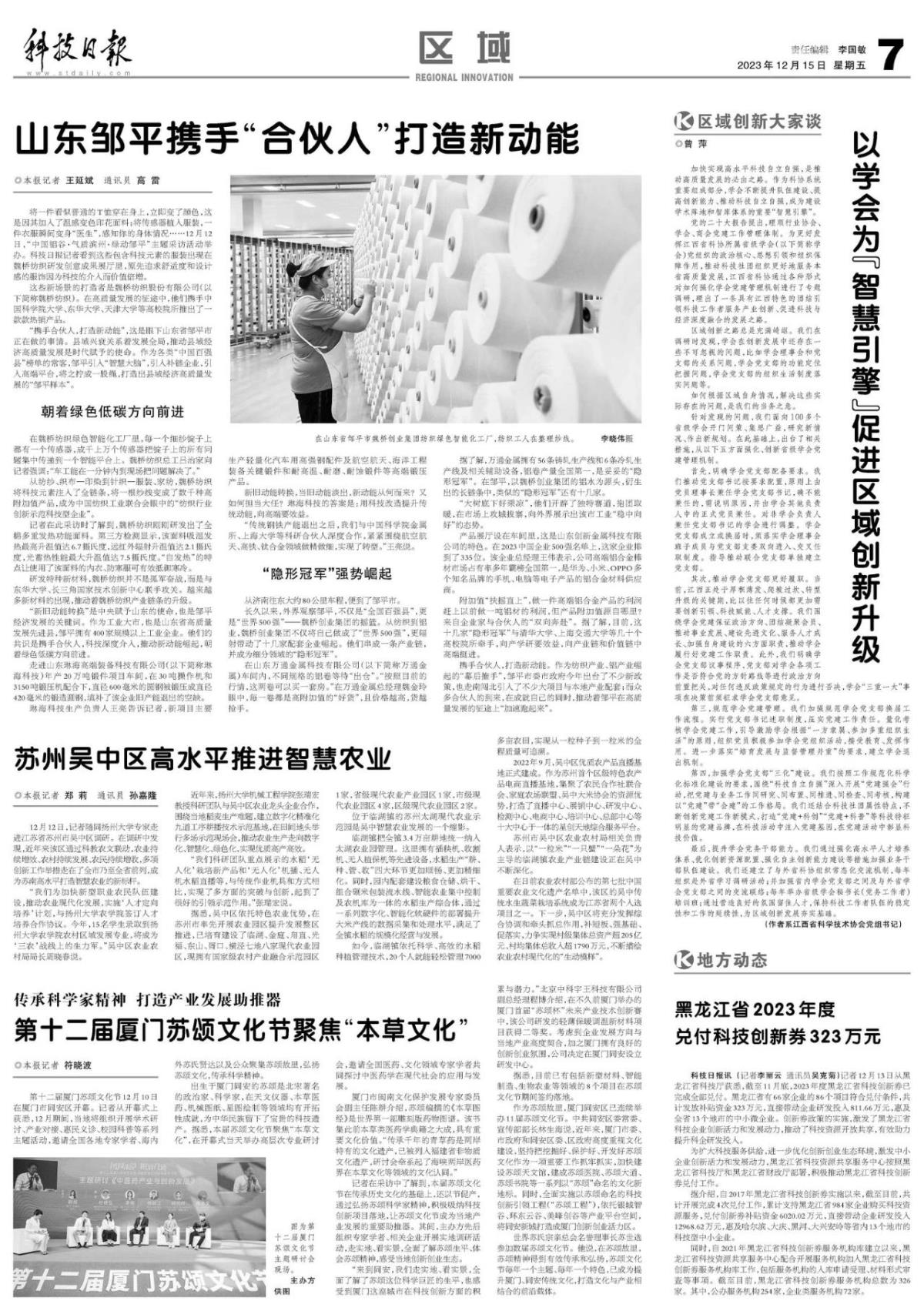 12月15日,《科技日报》第七版刊发江西省科协党组书记曾萍同志署名文章《以学会为“智慧引擎”促进区域创新升级》。