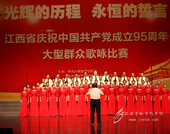 今年是中国共产党成立95周年。在省科协的领导下,我馆职工参加由江西省委宣传部、省直机关工委、省教育工委、省国资委共同举办的全省大型群众歌咏比赛。 比赛中,省科协党组成员、副主席彭玲华、梁纯平等领导出席。大家演唱大合唱《祖国颂》,用慷慨激昂的歌声,表达对祖国… -
