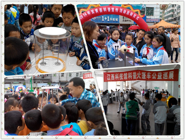 2014年4月13日—15日,江西省科学技术馆与宜黄县科技局在宜黄县联合举办系列科普活动。 4月13日,2014年宜黄县科普活动启动仪式在宜黄县汽车站广场举办。活动现场气氛热烈,30多件科普大篷车车载展品组成科技互动体验区,“铿锵锣鼓、激光竖琴、消防闯关、锥体上滚”等涉及声、… -