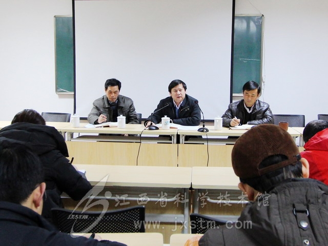 2014年2月20日上午,江西省科技厅党组书记郭学勤、副厅长卢福财一行4人莅临江西省科技馆调研。调研组一行先后实地查看主展厅等基础设施,慰问干部职工,出席调研座谈会,了解我馆科普教育与场馆建设情况。 座谈会上,张青松馆长作了2013年度工作总结汇报,从科学教育开发、… -