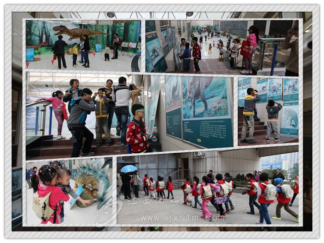 “在一个美丽的绿色丛林,栩栩如生的恐龙向人们热情地打招呼,缤纷美丽的蝴蝶翩翩起舞,3D图画似魔法般触手可及…”这是江西省科技馆展览现场。2013年10月19、20日,《大型3D实体仿真古生物展》在此与公众见面。展示项目包括仿真活体恐龙模型、恐龙和相关知识图文板、珍稀蝴蝶… -