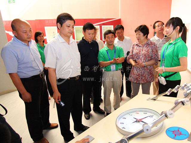 2013年7月10日下午,江西省科技厅厅长洪三国一行莅临省科技馆,考察调研我馆科学教育与科普传播、场馆设施及运行情况。洪厅长实地察看了主展厅一至三楼,并慰问工作人员,询问科技馆建设、展品展项及游客接待情况,观看了“能量穿梭机”、“机器人剧场”、“高压放电”等展品演… -