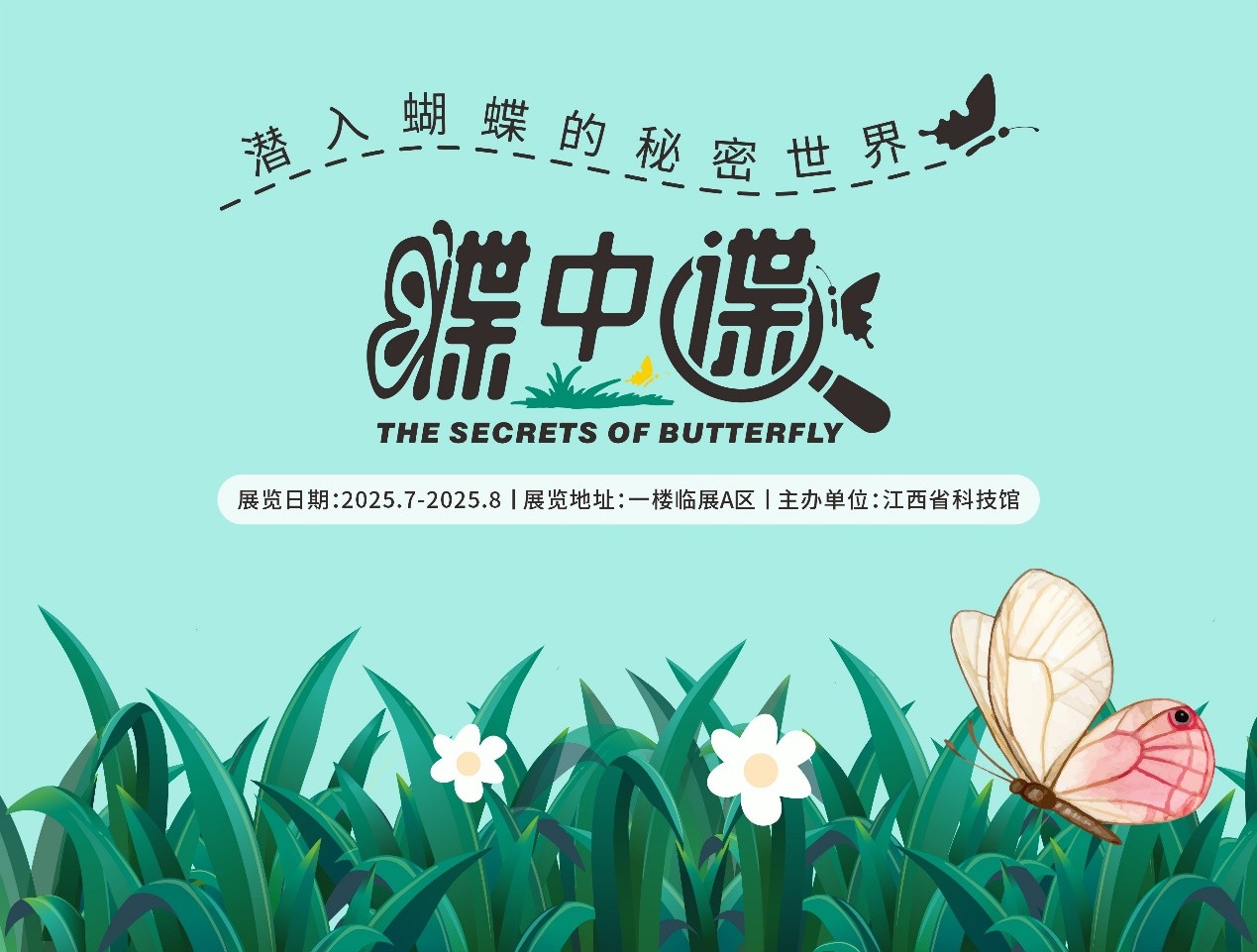 展览时间:2025年7月—8月 展览地点:江西省科技馆一楼临展A区 蝴蝶是昆虫纲鳞翅目凤蝶总科昆虫的统称。 蝴蝶,体态婀娜,绚丽多姿,被誉为有生命的“图画”,会飞行的“花朵”。 在中国已有记录的蝴蝶约2000种,种类数量较丰富,约占全球蝴蝶总… -